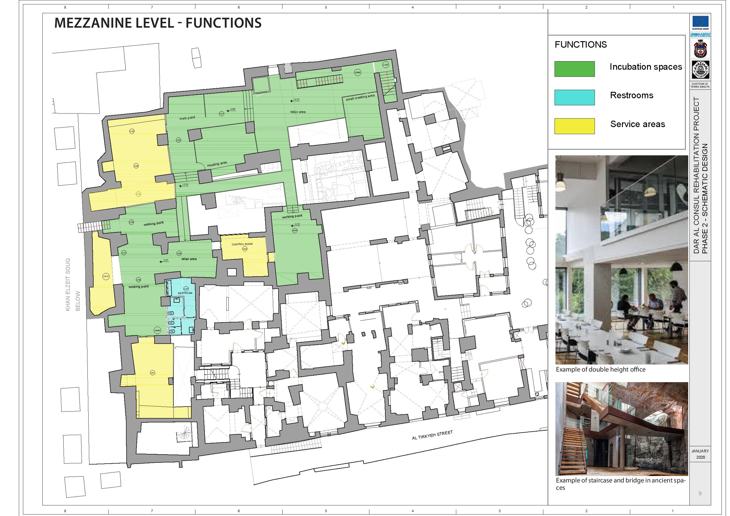 As for the design, the upper buildings’ design adopted a participatory post need assessment which highlighted the specific needs of the residents benefiting from the project. Furthermore, the ground floor level which overlooks one of the important alleys in Jerusalem “Aqabet Al Tikkieyh” or “Aqabet Al saraya “ is designed in a unique blend that respects its vaulted rooms and niches, while, the courtyards are designed to respect accessibility, privacy and utility.
